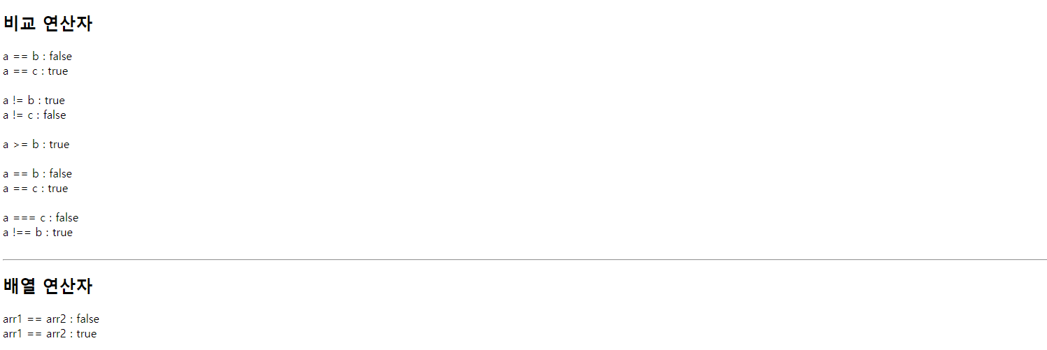 document.write('a == b : ' + ( a==b ) + "<br/>"); //a==b : false